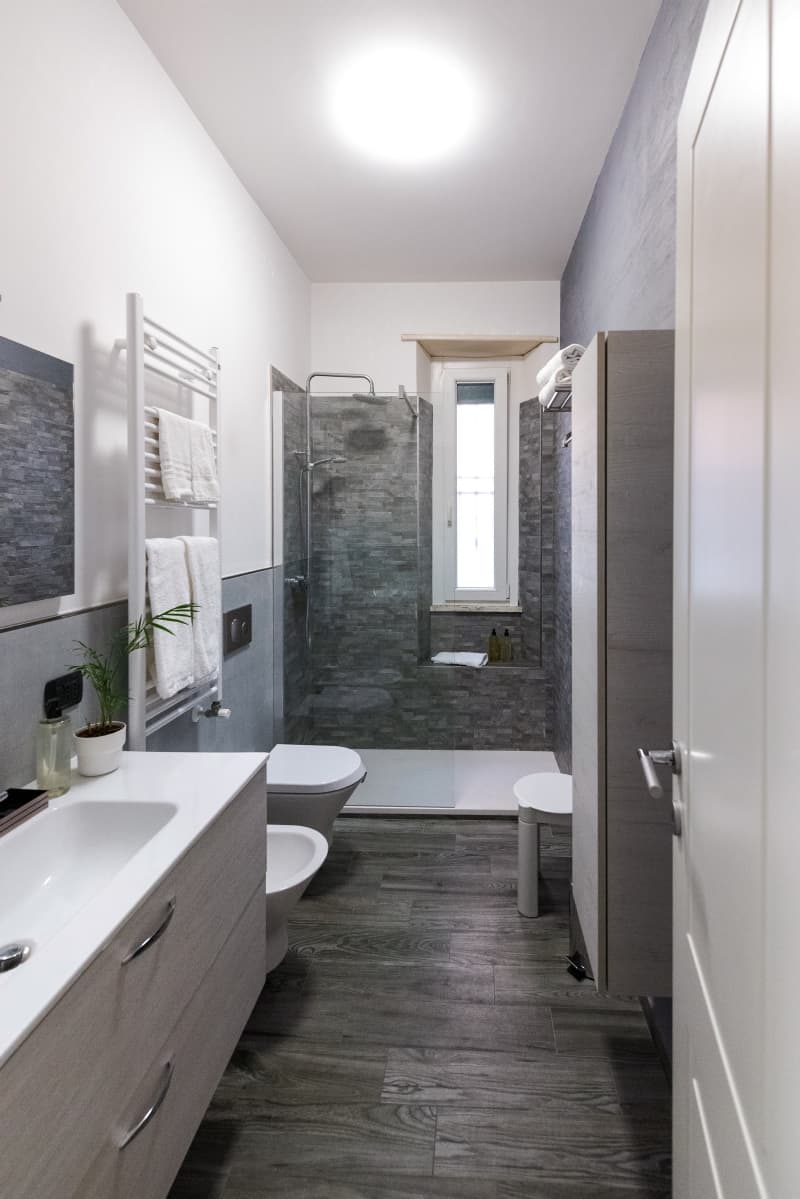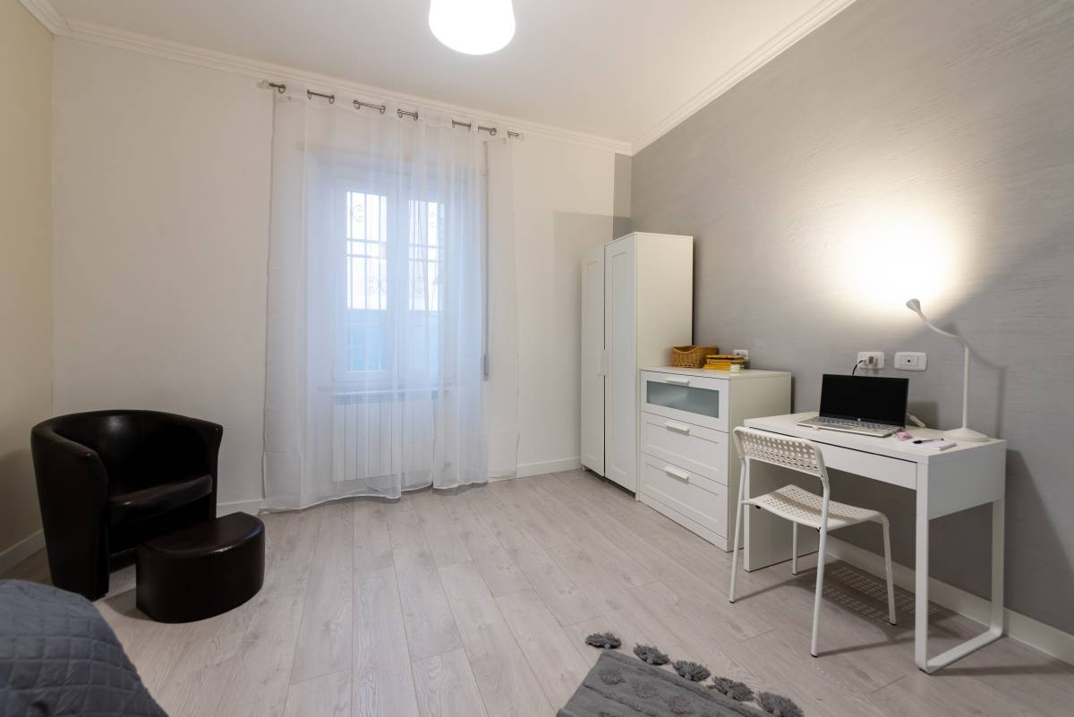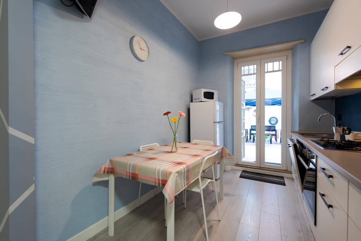 Due spaziose camere da letto, cucina abitabile con tavolo da pranzo, bagno con doccia e ampio terrazzo con salottino esterno.