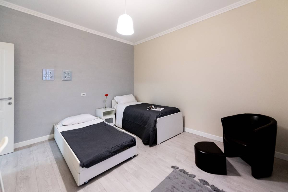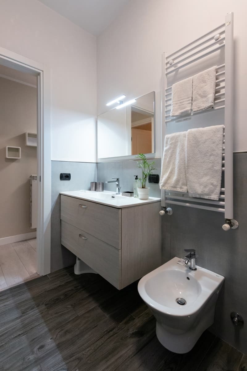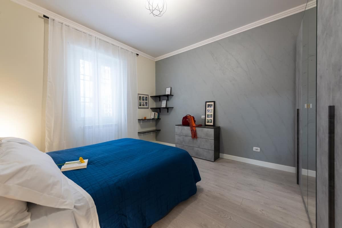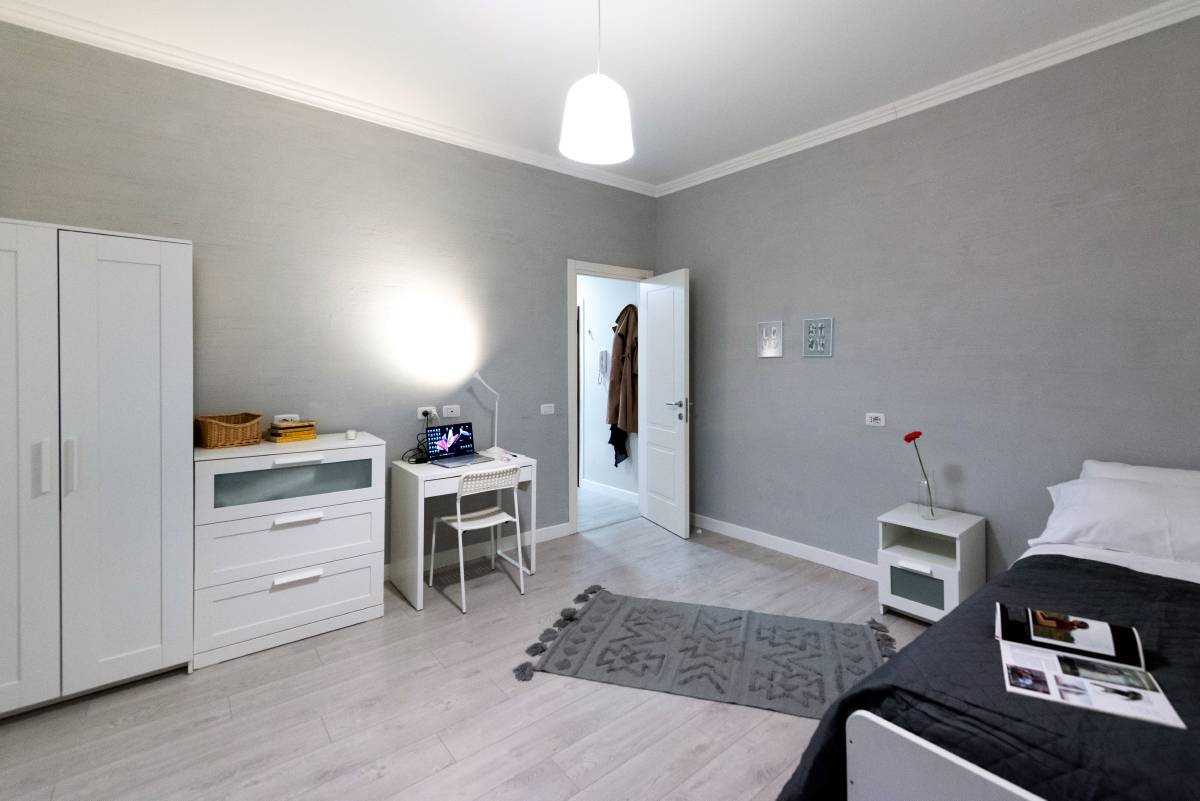 Due spaziose camere da letto, cucina abitabile con tavolo da pranzo, bagno con doccia e ampio terrazzo con salottino esterno.